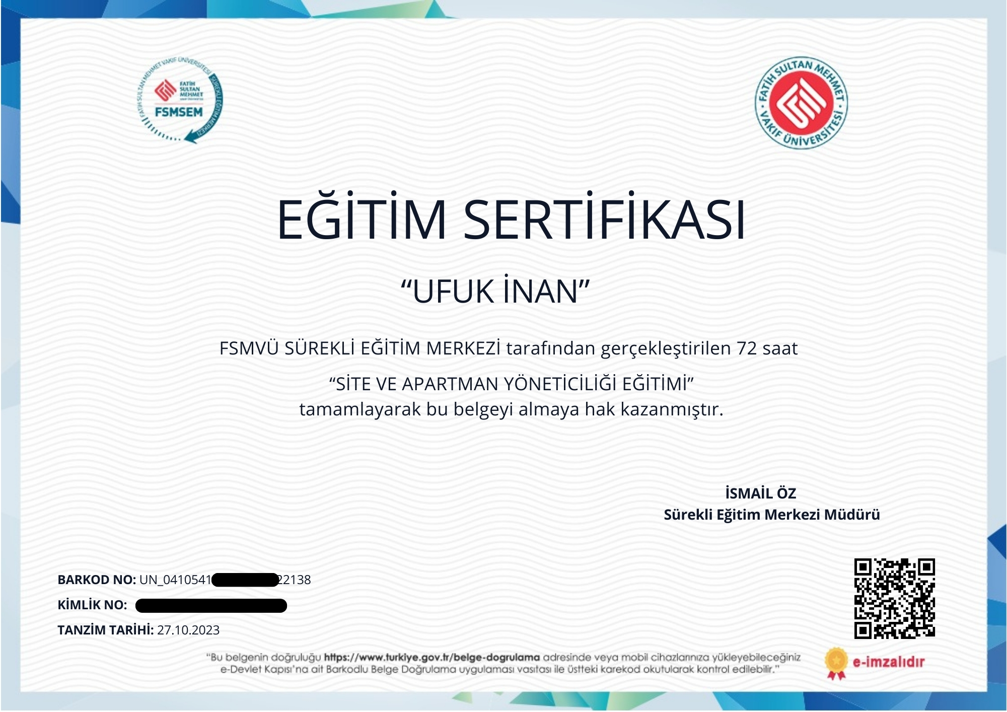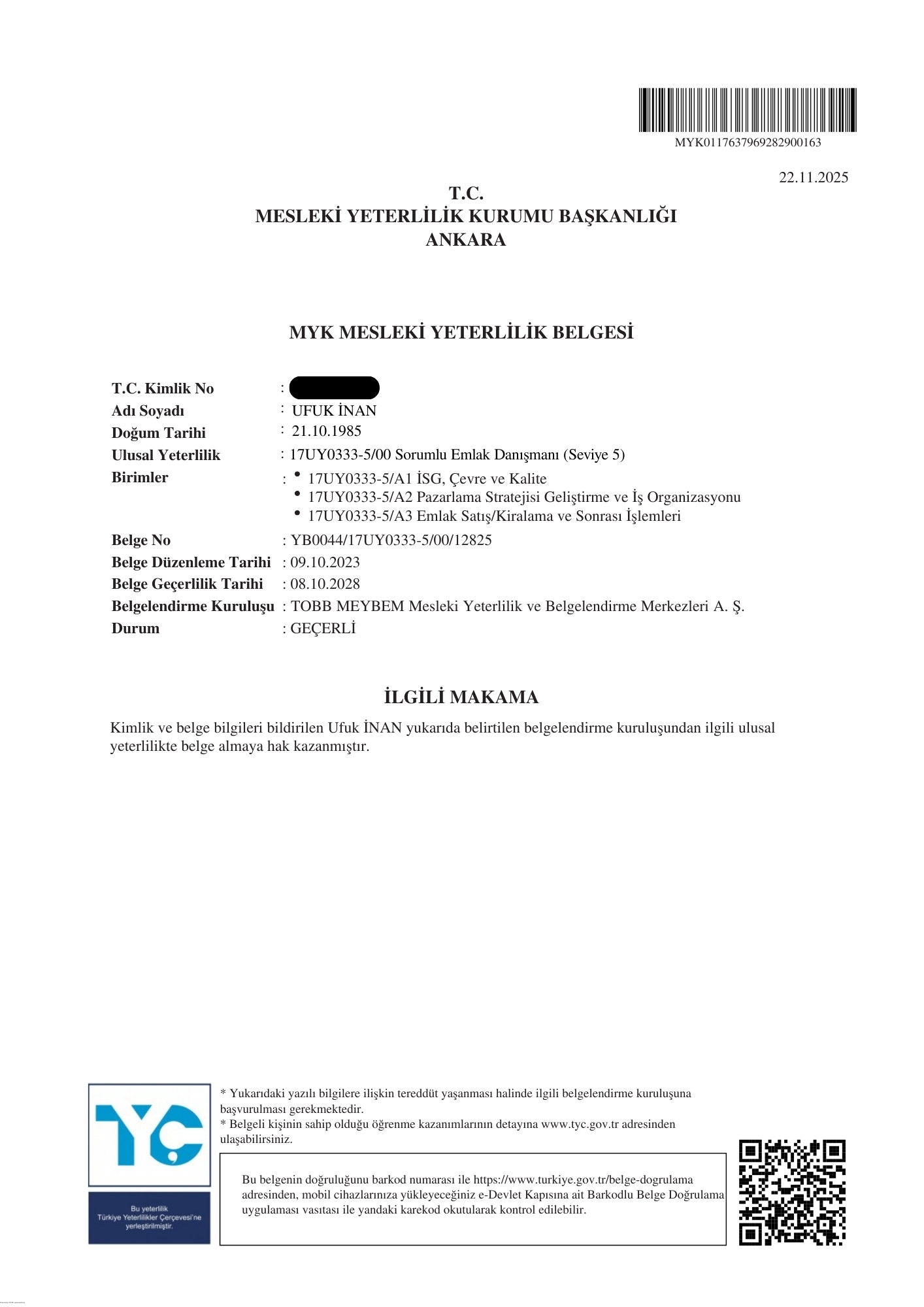 Mesleki Yeterlilik & Yetki Belgelerim